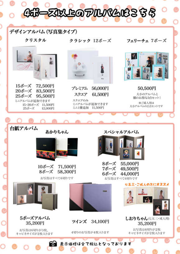 アルバム代には、全て撮影代が含まれております。